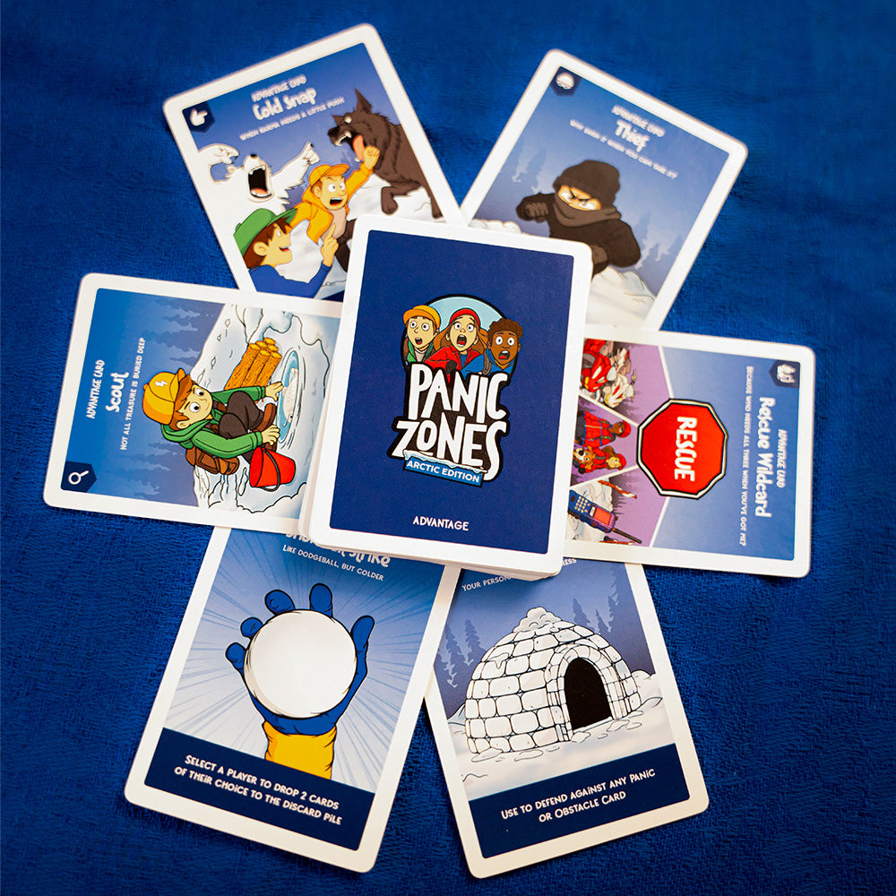 Panic Zones®️ — Arctic Edition is a fast-paced survival card game for 3–6 players, ages 10+.